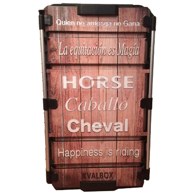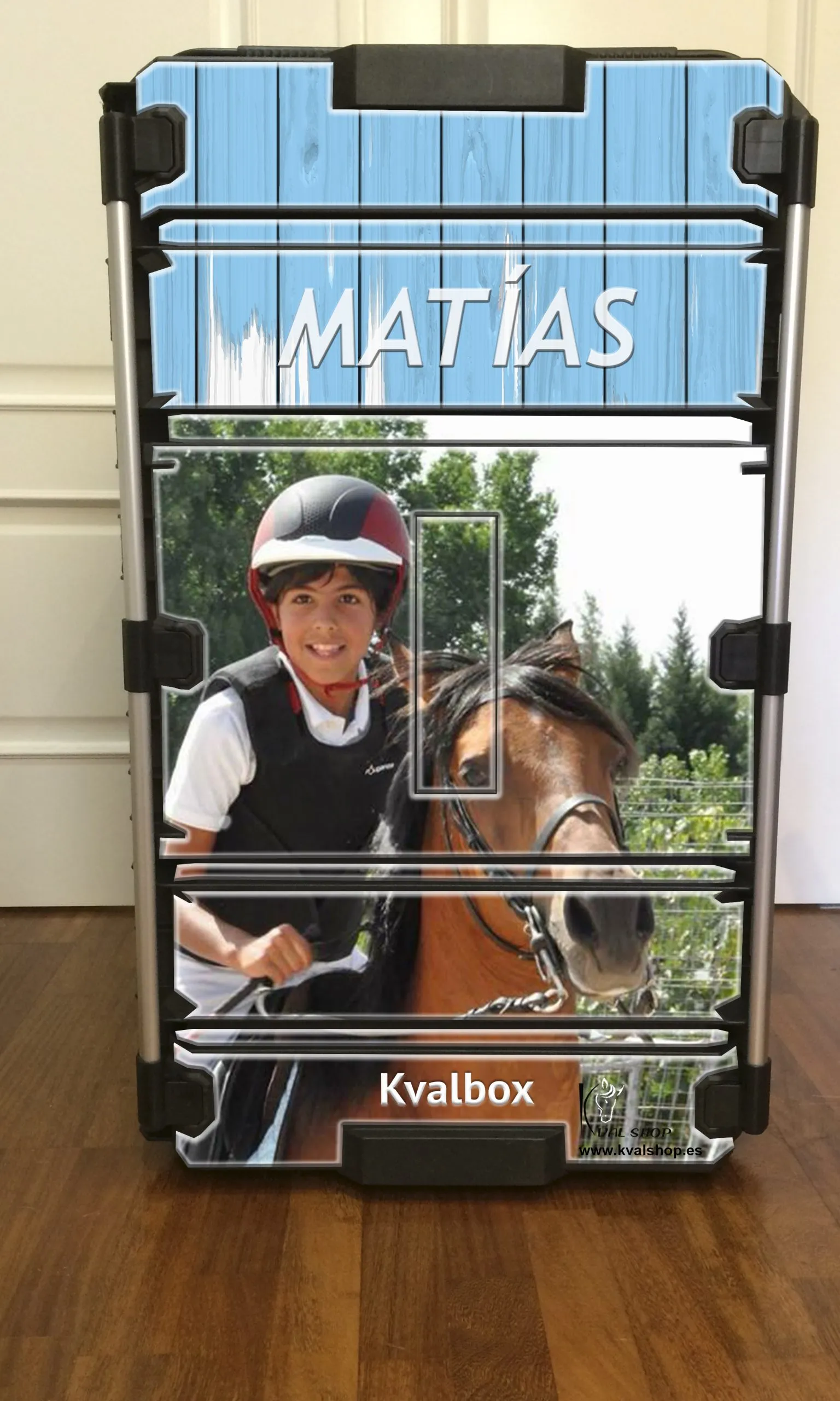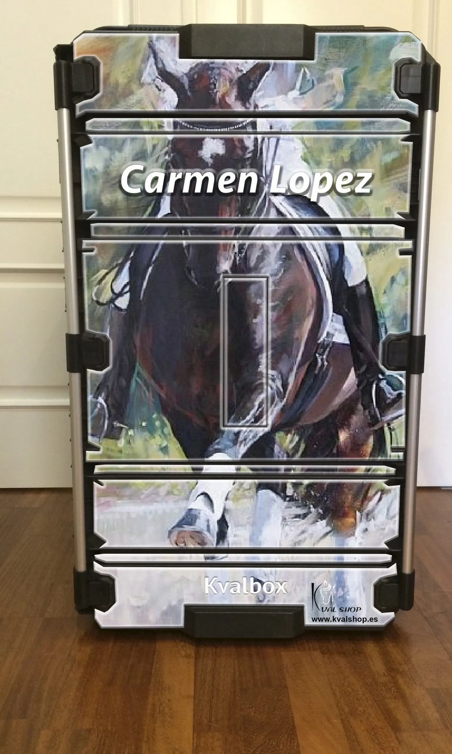 Puedes hacer único tu Baúl de concurso de equitación Con nuestro personalizador Online KVALBOX Custom. Dále color, utiliza nuestros diseños o el tuyo propio, sube tus fotos, añádele tu nombre, el de tu caballo, el de tu equipo, tus trofeos, placas, stickers…. Si quieres algo especial y no sabes como hacerlo, no dudes en ponerte en contacto con nosotros.